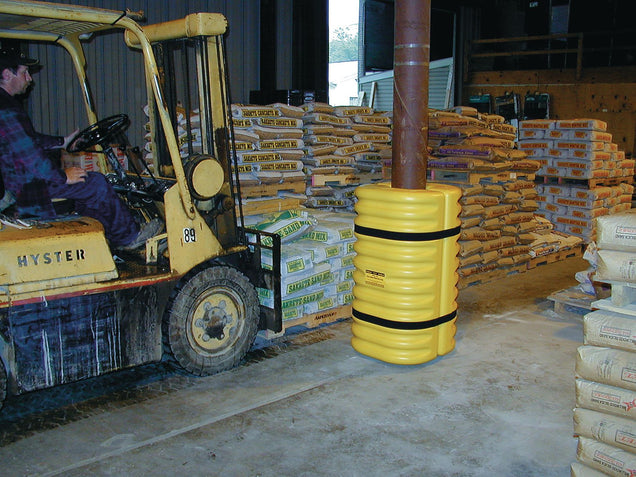 Provides protection for warehouse and factory columns, posts and beams. Absorbs impact to minimize column, forklift and personnel damage and injury.
