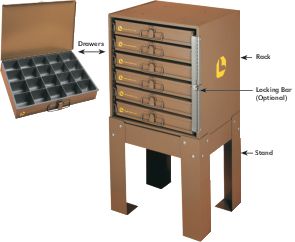 Fabriqué à partir d'acier de premier ordre à froidTous les tiroirs sont livrés avec des inserts en polystyrène à fort impact et un verrou pour empêcher le contenu de se répandre