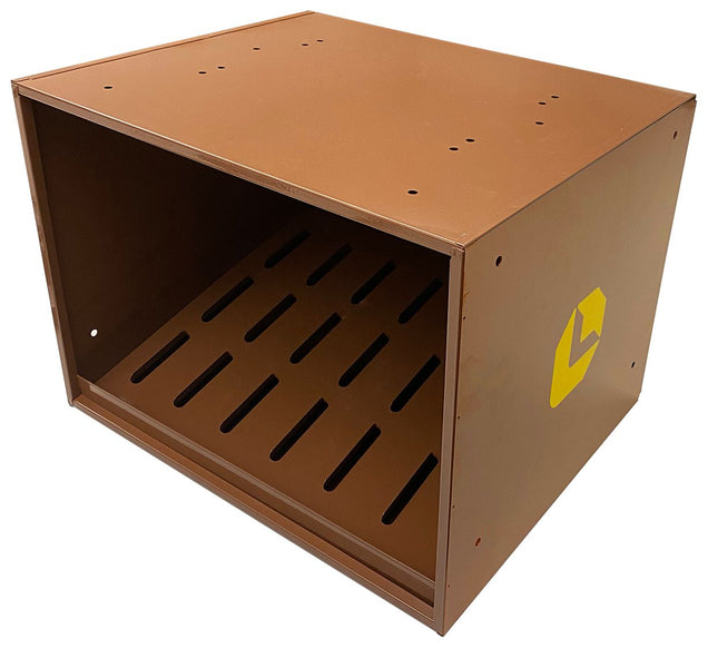 Heavy gauge steel Two slotted keyholes for mounting on a wall or cabinet