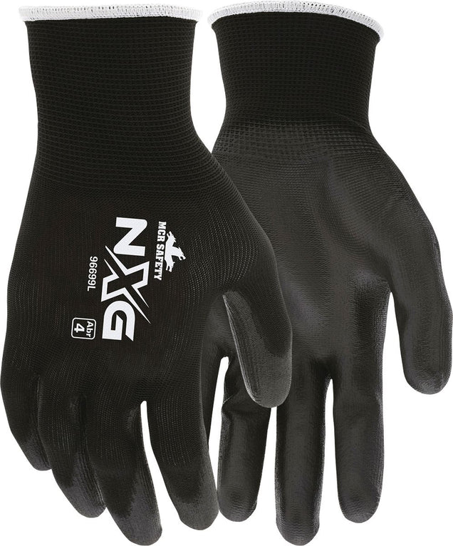 Seamless knit nylon/elastane glove with nitrile coated microfoam grip on palm and fingers. MicroFoam nitrile coatings are compatible with light oils and will provide a good grip and excellent abrasion resistance